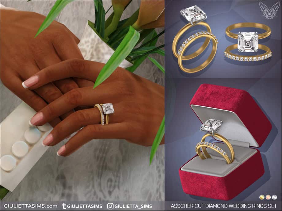 This ring pairs best with minimalist gold jewelry, neutral-toned wedding gowns, and sleek or softly styled bridal hairstyles. Click on the attached link for more information on this Sims 4 wedding cc.