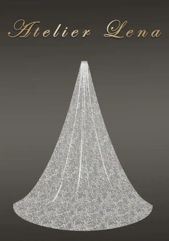This veil pairs best with classic ball gowns, lace wedding dresses, or minimalist silhouettes.
