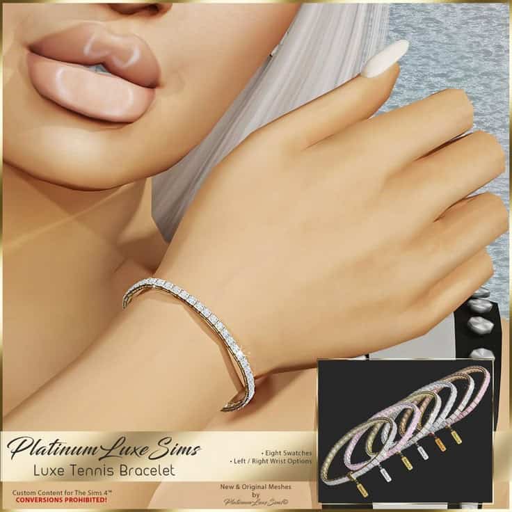 The bracelet comes with left and right wrist options, so you can place it exactly where it fits your Sim’s look best. You’ll also get 8 swatches that let you switch between different metal tones and finishes.