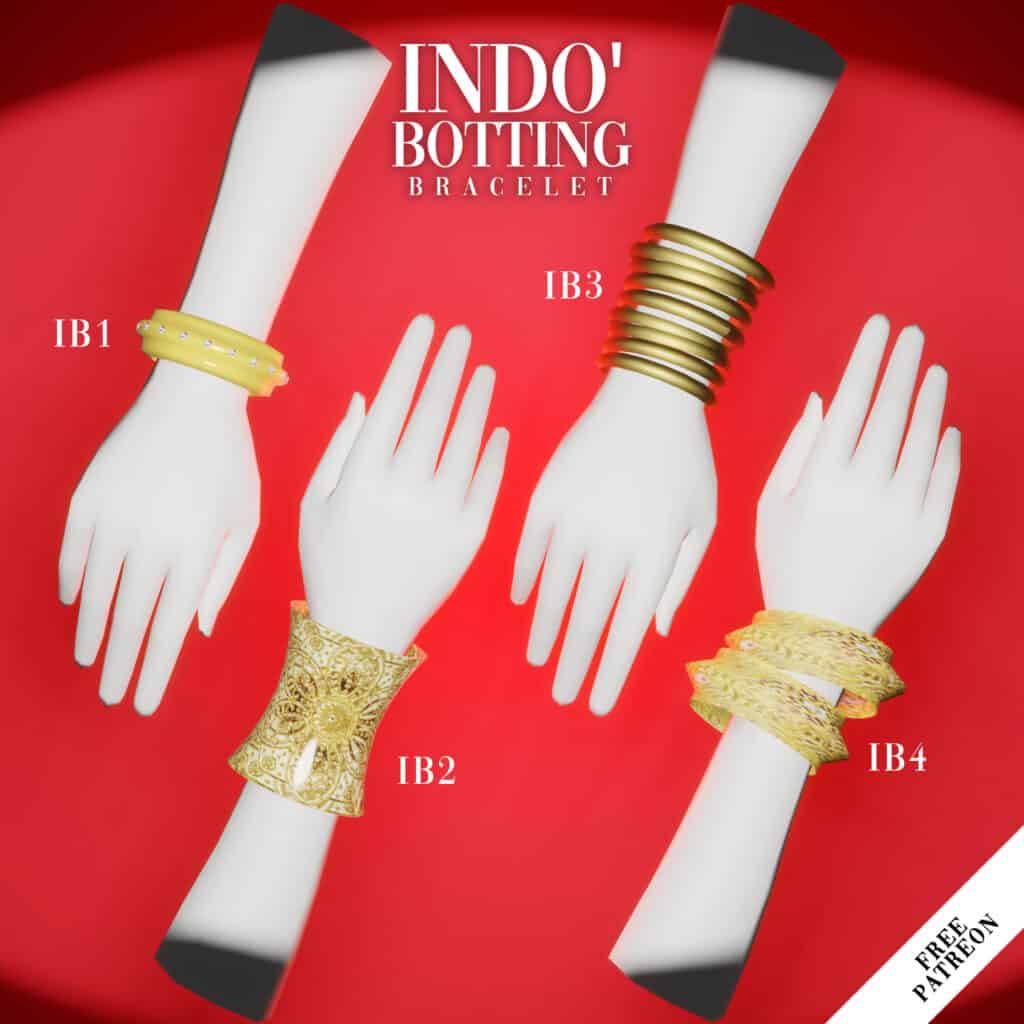 Indo’ Botting Bracelet is a Sims 4 bracelet cc pack with multiple bold, gold-toned bangles, including slim stacked bands and wider, engraved cuffs. You’ll find multiple variations, so you can switch between a more minimal stacked look or a fuller, statement wrist depending on your Sim’s outfit.