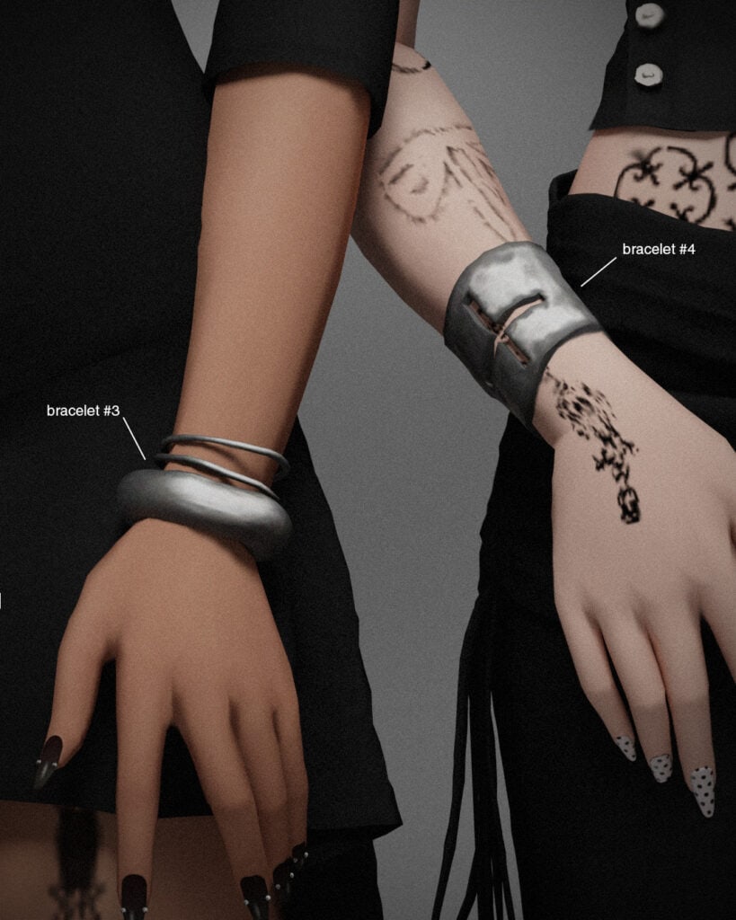 With 8 metal tones available, you can easily switch between gold, silver, and darker finishes to match different outfits and aesthetics. Note that this Sims 4 bracelet cc is compatible with HQ settings and is designed specifically for the left wrist.