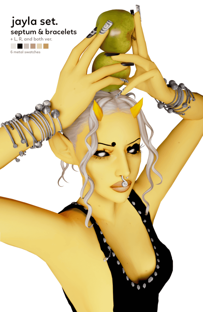 This piece works especially well with streetwear, alt fashion, or edgy everyday looks where accessories do the talking. Note that it’s part of a larger Jayla set that also includes a septum piercing. This lets you create a fully coordinated look in CAS.