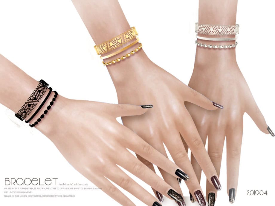 If you’re looking for a versatile stacked bracelet set, check out the S-Club Ts4 Bracelet. This Sims 4 bracelet cc features multiple styles in one, including beaded strands, slim bands, and engraved cuffs.