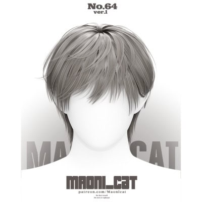 Hair No. 64 is a layered short hairstyle with soft, textured strands that fall forward over the forehead. This silhouette creates a slightly messy fringe that partially covers the eyes.