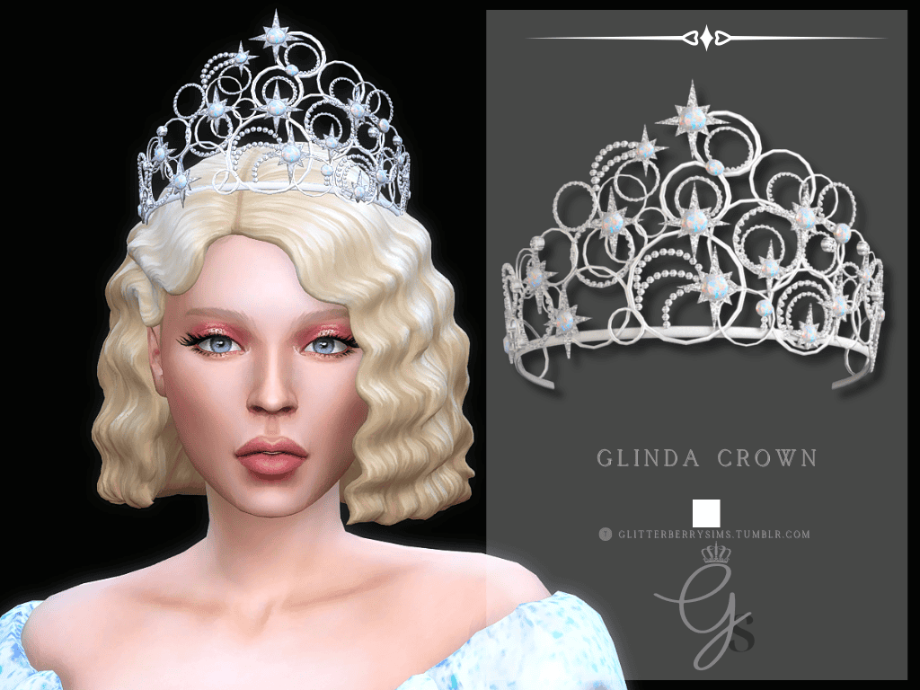 Glinda Crown is a delicate, high-detail tiara inspired by the iconic bubble crown look. It’s designed with intricate swirls, star accents, and a lightweight, airy structure. The crown is ideal for magical storylines, fairytale saves, or soft, ethereal CAS looks.