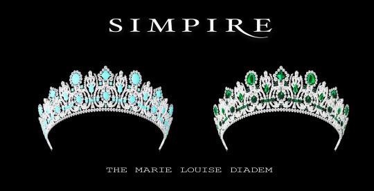 The Marie Louise Diadem is a highly detailed, elegant Sims 4 crown cc with intricate metalwork and gemstones. It comes in two versions – a turquoise version and an emerald version, so you can switch up the aesthetic depending on your Sim’s styling.