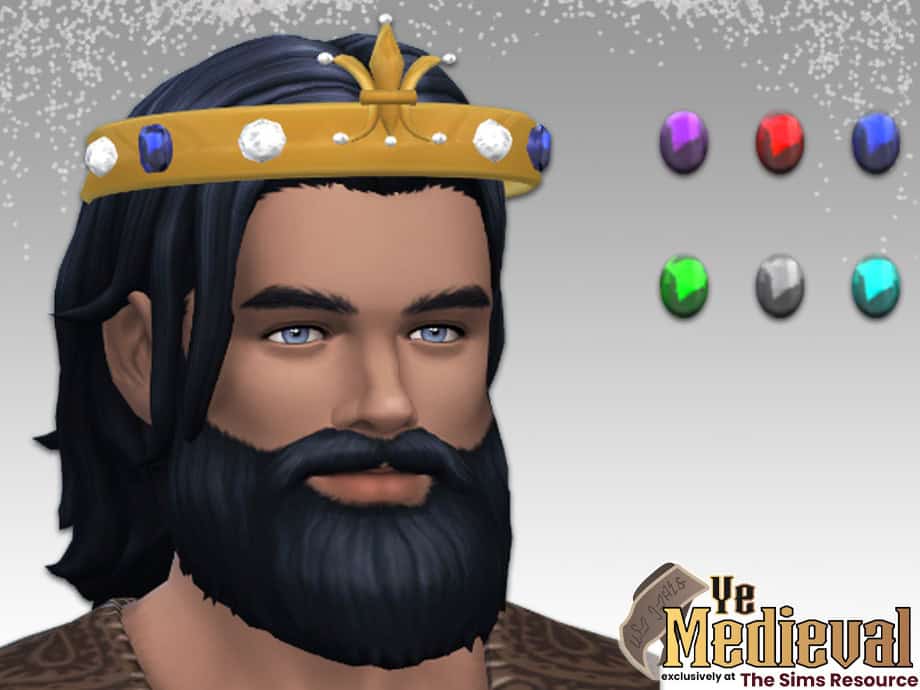 If you’re looking for a clean, classic royal crown for your male Sims, the King Sebastian Crown is a solid pick. It features tall gold points and subtle gem detailing around the band. You can use the Sims 4 crown cc for medieval saves, royal storylines, or legacy gameplay.