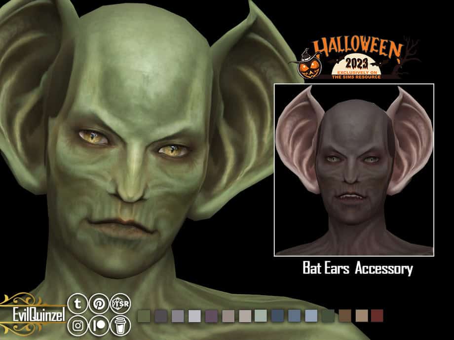 You can use this preset to create demons, vampires, or fantasy characters. This Sims 4 ear preset is available in 15 swatches. You’ll find it in the hat category in CAS and it’s available for male and female Sims aged teens to elders. It works with all occult species.