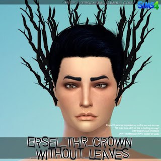Ersel Thranduil Crown is a dramatic branch-style headpiece inspired by woodland elf aesthetics. The crown forms a tall, antler-like silhouette made from twisted branches that extend upward and outward from the head. This gives your Sim a regal forest guardian look.