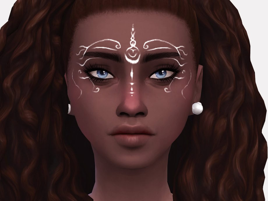 The markings are symmetrical and subtle, making them work well with both fantasy outfits and everyday styling for magical characters. The facepaint is available in 3 swatches. It’s enabled for all occults, making it easy to use for spellcasters, vampires, or other supernatural Sims. This Sims 4 elf cc is compatible with the base game.