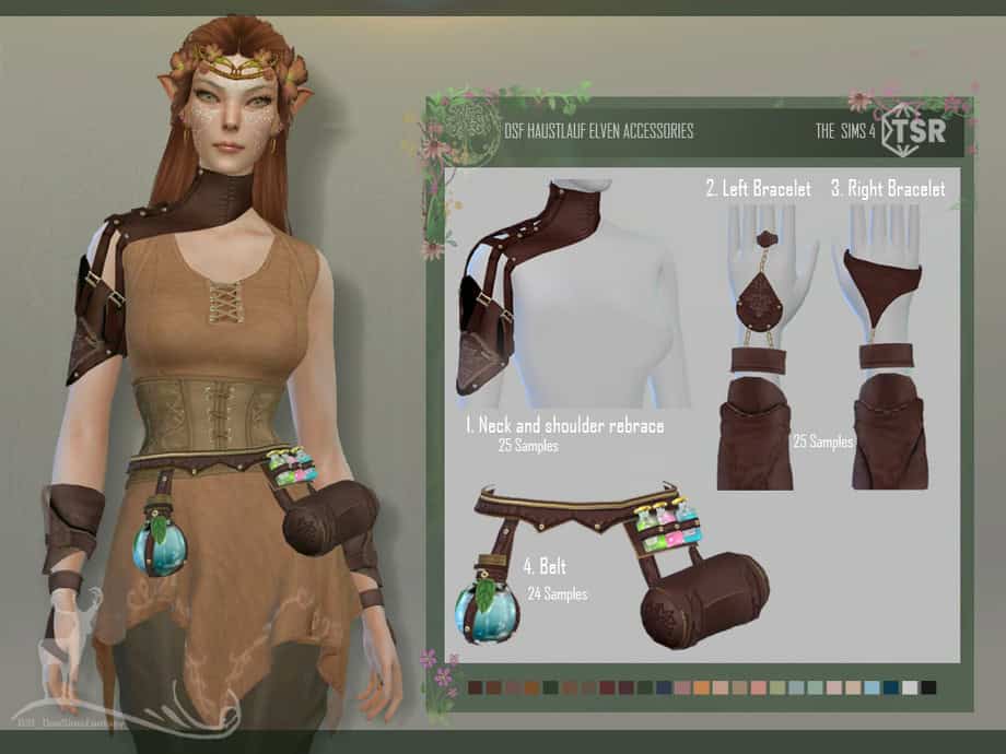 Each item can be equipped individually, making it easy to mix them with other fantasy clothing or armor sets. The accessories are placed across different CAS categories. Check the description to match them.