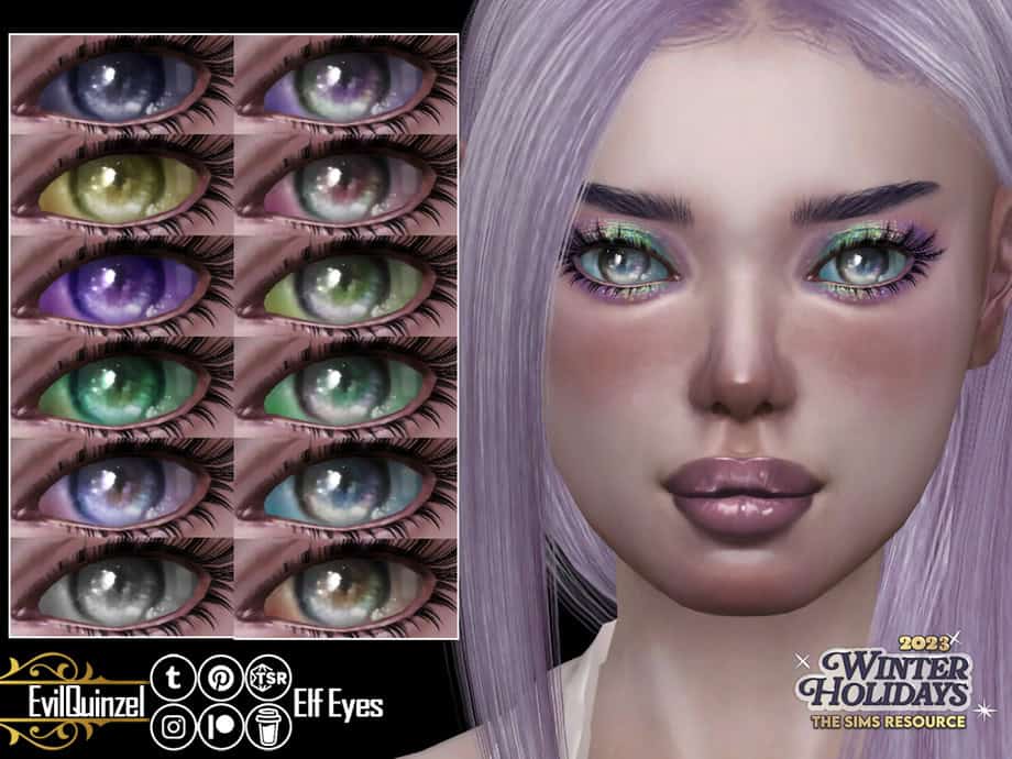 If you want striking fantasy eyes for your elf Sims, get these Elf Eyes. They’re vibrant, multicolored irises designed for magical or supernatural characters.