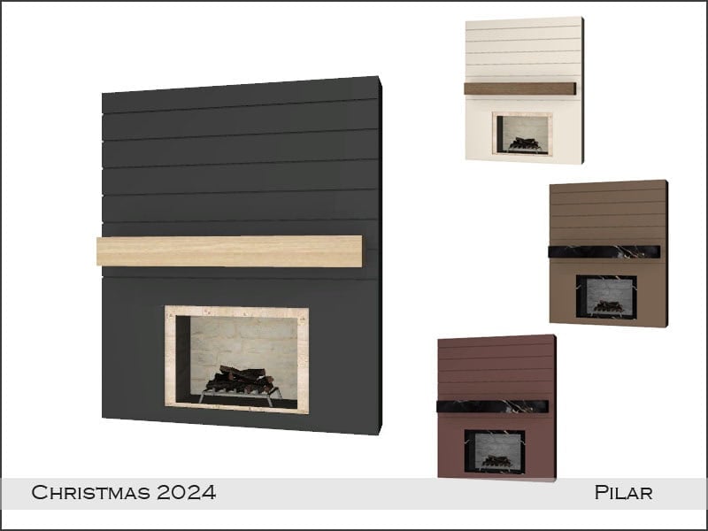 The Pilar Christmas 2024 Fireplace brings a sleek, modern look to your Sim’s home. This fireplace uses clean siding panels, a simple mantle slab, and minimalist framing around the firebox. The result is a stylish piece that fits perfectly in cozy builds.