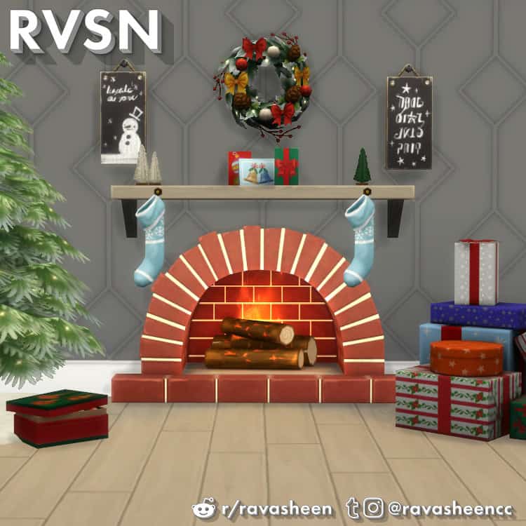 It comes as part of the Christmassy Set, which includes 12 matching items and a huge pile of logs to keep the fire burning. Just make sure your game is fully patched, as this CC requires recent updates to function correctly.
