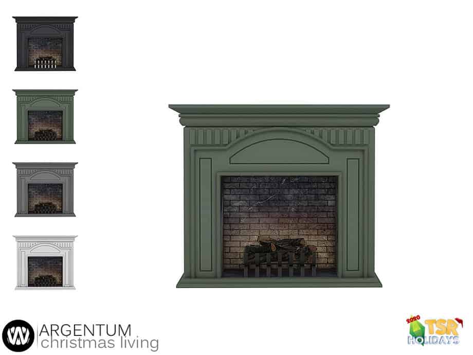 Designed by Wondymoon, the Argentum Fireplace is a must-have for your holiday gameplay. It features carved paneling, a high mantel shelf, and a deep firebox, all of which look STUNNING in game. The fireplace comes in four shades, including dark green and rich wood swatches.