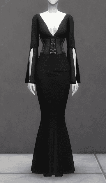 This goth dress is perfect for adding a touch of edge to your Sim’s goth party. It’s made from black fabric and features a neckband.