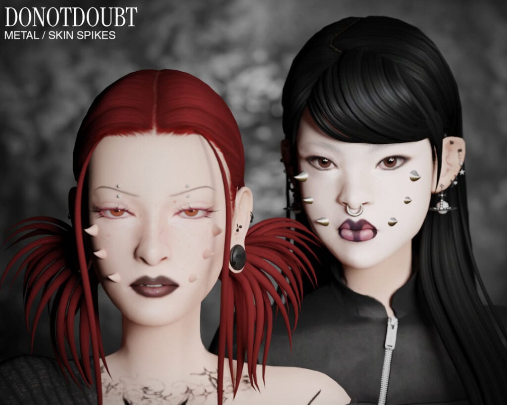 For those who want to go full-on punk and goth, the Thorn-Up Hairstyle Set is a great choice. It contains multiple hair cc designed with towering spike silhouettes and exaggerated mohawks with razor-sharp points. The hairstyles include: