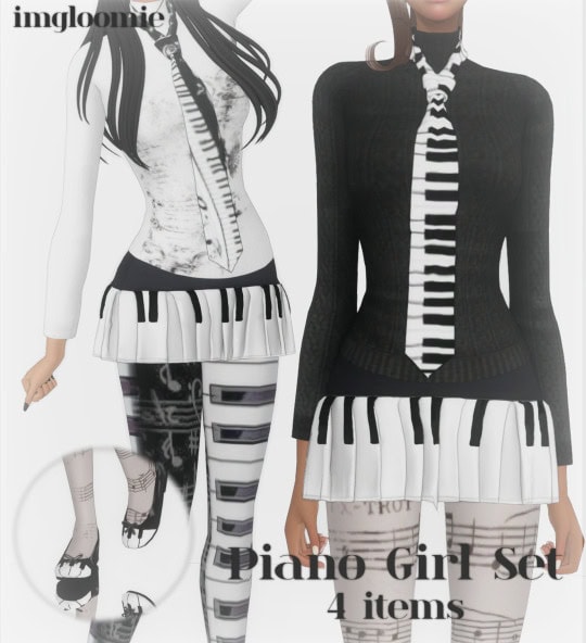 This Piano Girl Set blends soft gothic elegance with a playful, music-inspired aesthetic. You’ll find: