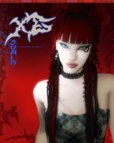 The XG Hair Set is a versatile collection of statement hairstyles and customizable overlays ideal for gothic Sims. The pack delivers a bold mix of cyber-goth, alt-pop, and futuristic edge through the following hairstyles: