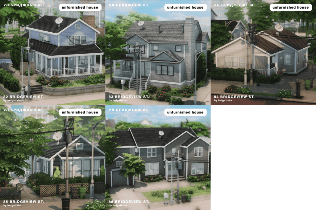 Place all four homes in Windendburg to create the perfect estate for your suburban Sim family. These Sims 4 houses are compatible with the base game and use cc, which is included in the download. Please enable bb.moveobjects on for correct lot placement.