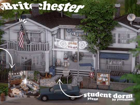 Designed as a community venue, this build offers open outdoor areas suitable for celebrations and gatherings. The lot works well for weddings, seasonal markets, festivals, and memorial events. I recommend using this to create a lively space where Sims can meet, celebrate, or host town activities.