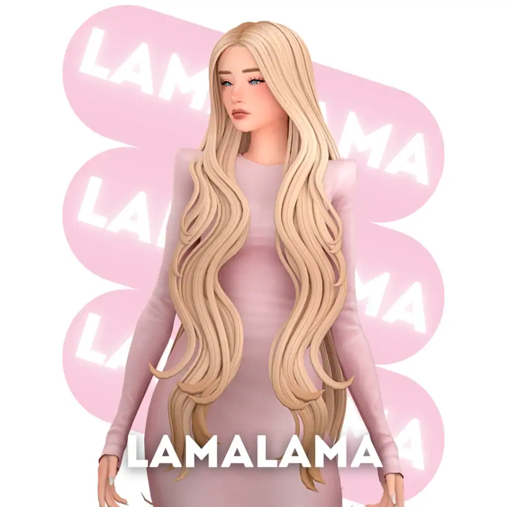 Everleigh Hairstyle is a super-long, flowing hair with soft waves and a clean middle part. It’s one of the longest Sims 4 hair cc you can add to your mods folder. The length drapes elegantly down the front, creating a polished yet romantic silhouette with gentle movement throughout.
