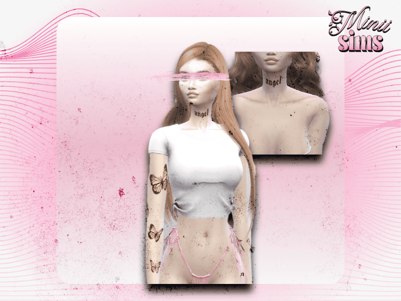 Angel Tattoo – Neck is a delicate script-style neck tattoo with the word “angel” covering the front of your Sim’s neck. The design is minimal and soft, making it perfect for subtle, aesthetic looks.