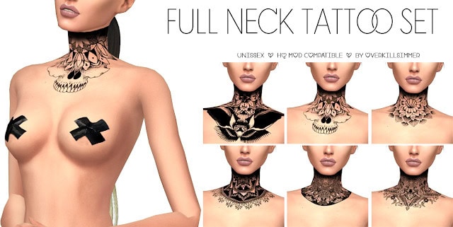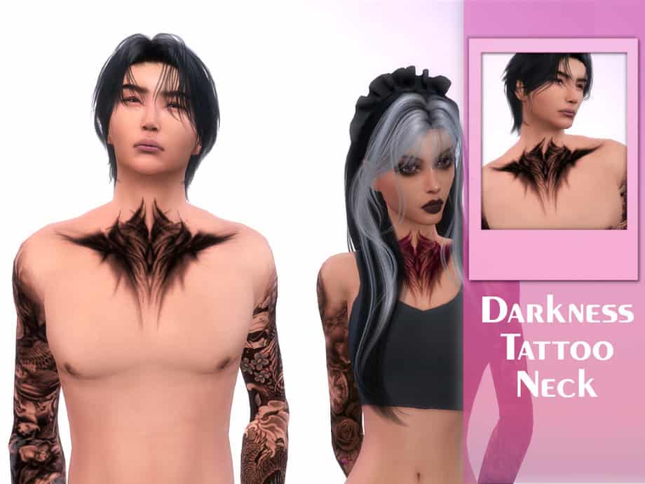 Sims 4 neck tattoos are one of those details that make your Sim suddenly look ten times better. Whether it’s a soft, delicate piece or a bold, full-coverage design for the chest and shoulders, neck tattoos are what you need to add a badass vibe to your Sim’s look.