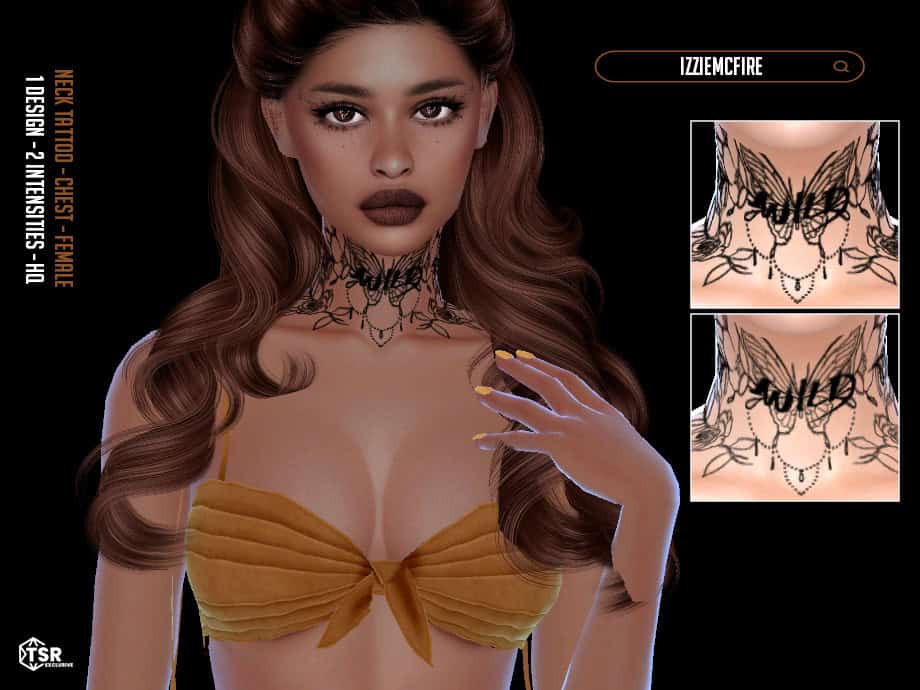 Butterfly Tattoo is a delicate neck-focused design of a detailed butterfly right at the center of your Sim’s throat. This creates a soft yet eye-catching focal point.