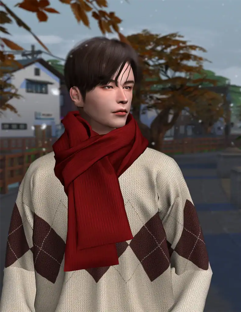 It pairs especially well with sweaters, denim jackets, long coats, and layered autumn or winter outfits. Note that this scarf is designed for Sims of all genders, aged teens to elders.