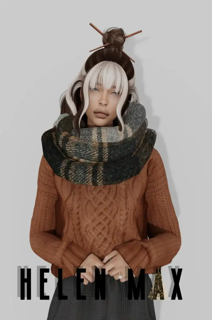 Helen Max Winter Scarf is a chunky cold-weather accessory designed for the base game. The thick, layered wrap gives Sims a properly bundled-up winter look.