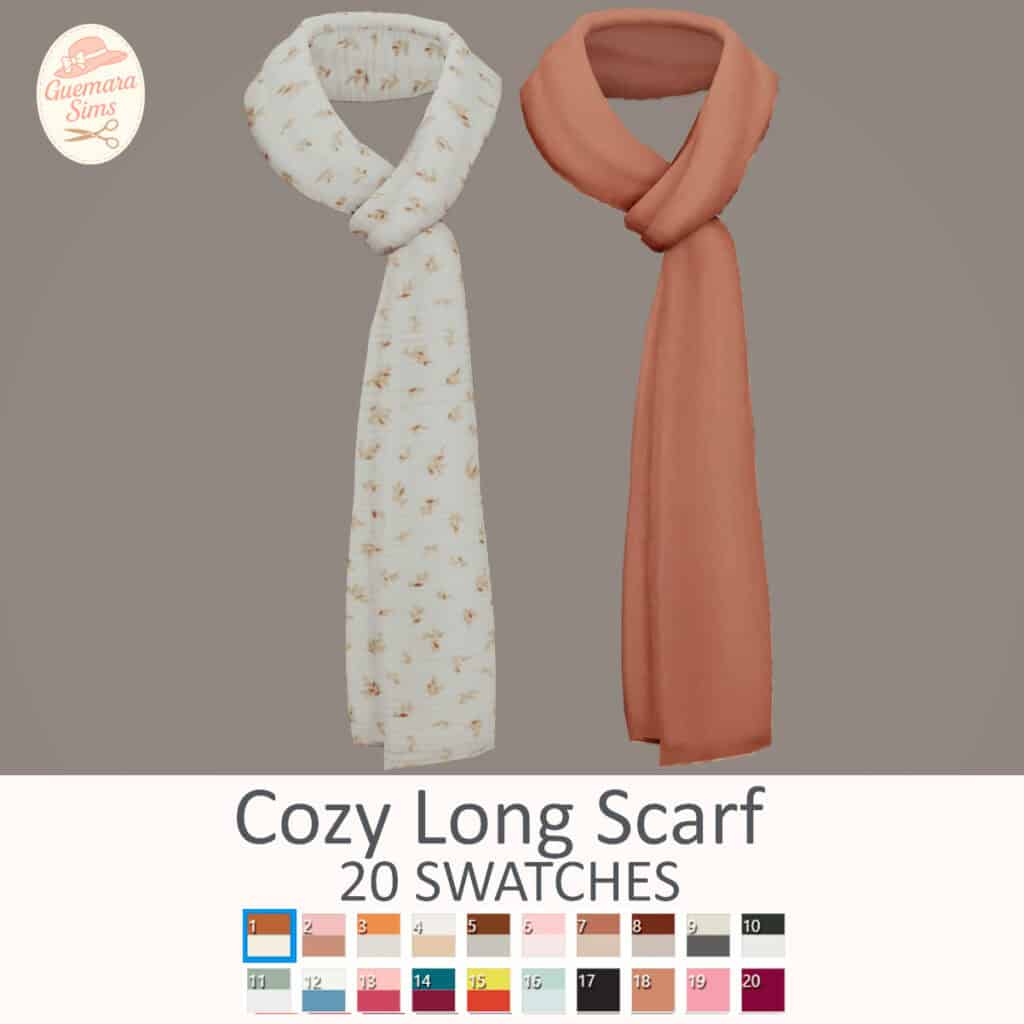 If you’re looking for a soft, long scarf for warmth and effortless layering, the Cozy Long Scarf post is a perfect pick. It’s designed with a natural draped fit that goes past your Sim’s waist. The scarf comes in 20 Maxis Match swatches, including red, yellow, pink, brown, black, and green.
