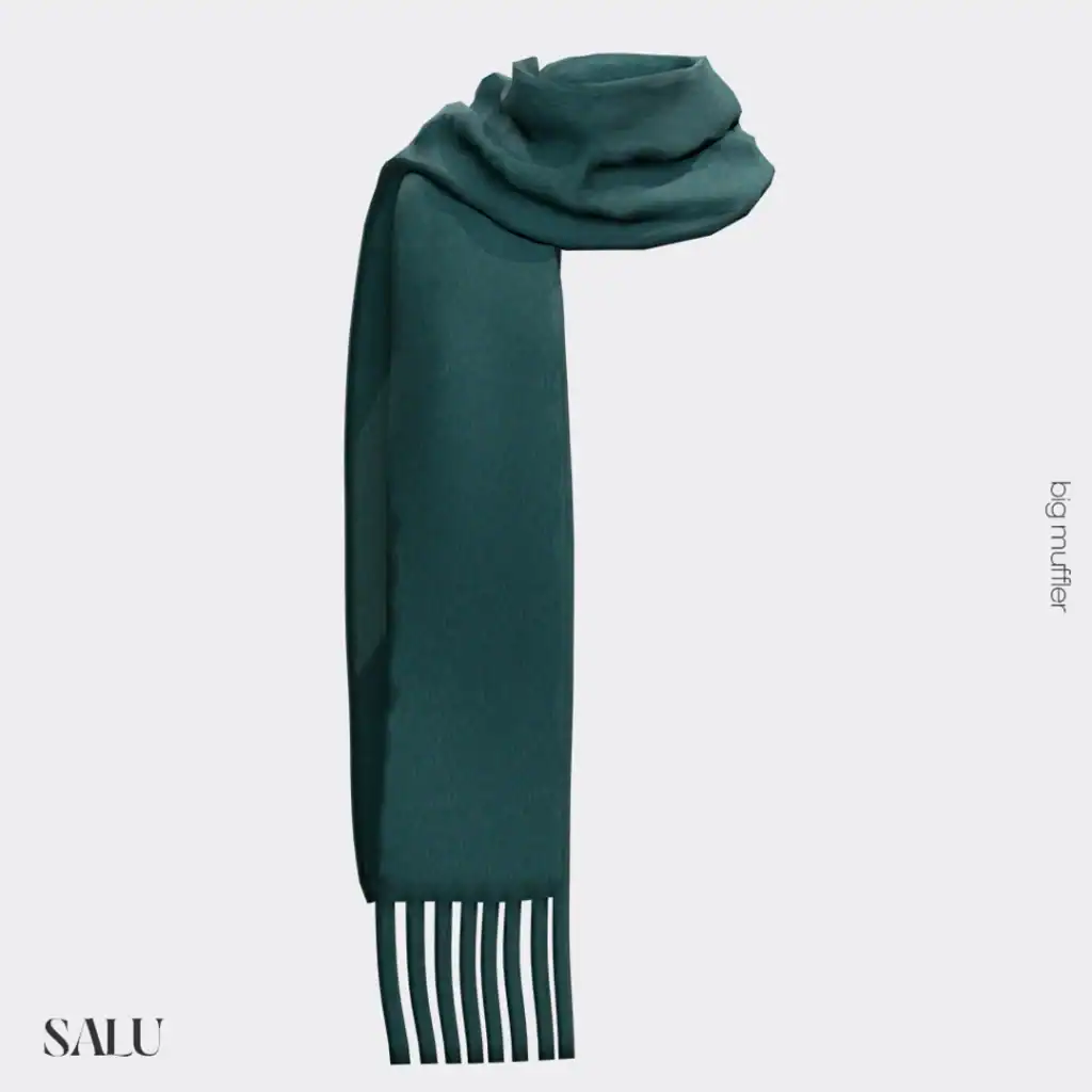 The Big Muffler is an oversized scarf with a clean, minimal silhouette. The Sims 4 scarf cc has a thick, wrapped look and long, draped ends. You’ll find it in multiple swatches, including green, blue, red, brown, pink, and gray.