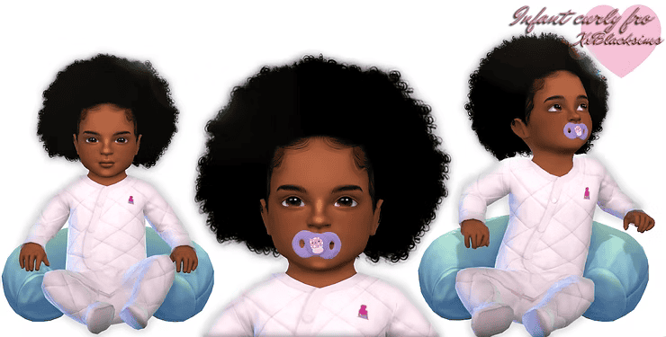 Curly Fro is a soft, rounded afro hairstyle designed specifically for toddler Sims. The style is full, fluffy with natural volume, giving infant Sims a realistic and adorable curly look.