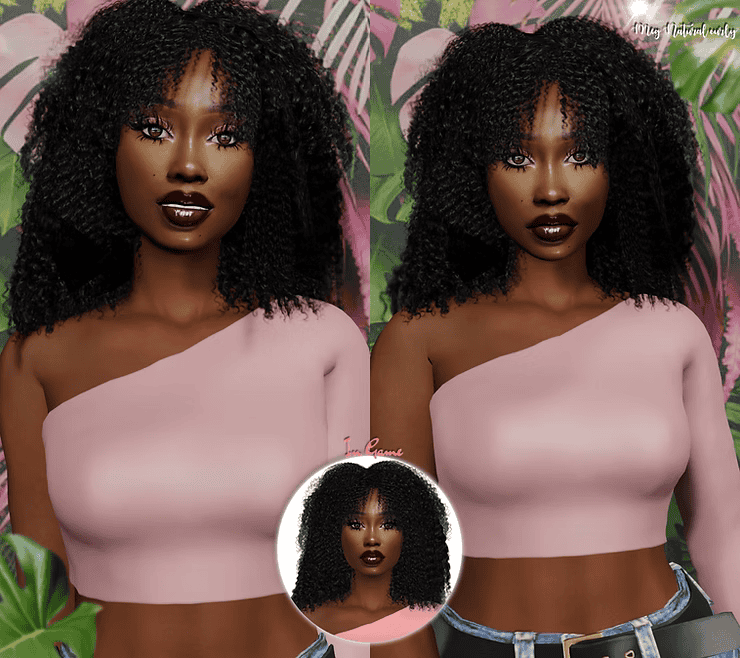 If you want an extremely short afro style, Curly Chop is the perfect choice. This hair is about 2 inches long to give your Sim that short hair girl fantasy. The only problem is that the style comes in 4 swatches, limiting the color choices you have. Still, it’s a great afro-hair Sims 4 CC to add to your collection.