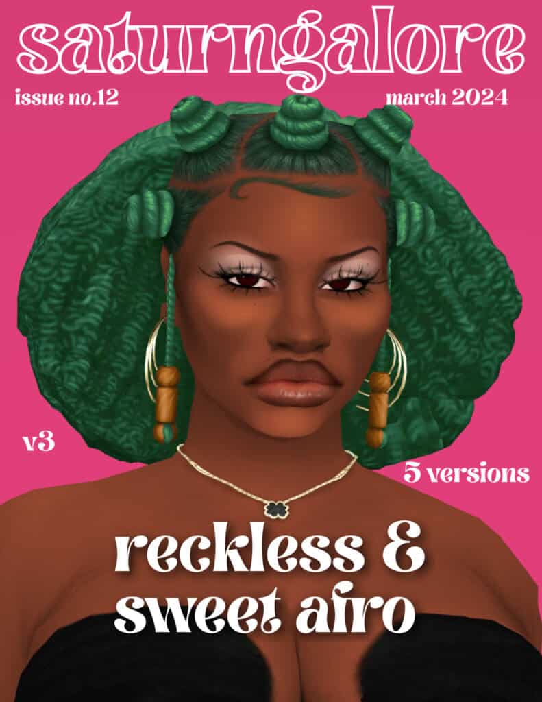 It’s designed for Sims aged teens to elders and is base-game compatible. Note that the afro hair Sims 4 isn’t hat-compatible, and minor clipping may occur around the ears or side braids.