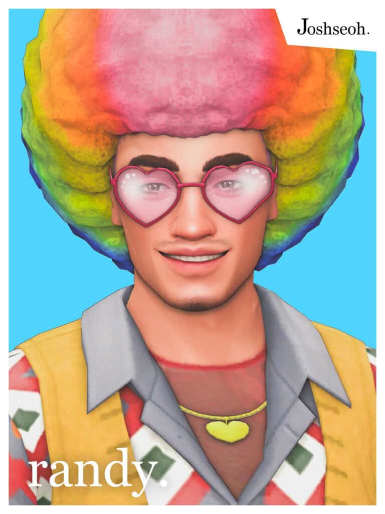 Randy Hart Hair & Wig is a rounded afro hairstyle inspired by the iconic disco-era. The hair comes in both the standard hair and a separate rainbow wig version for more playful styling.