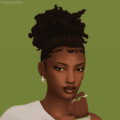 Curly Puff is a simple afro updo hairstyle designed by Baddiesims. It features braids at the front that extend up in the middle into an afro ponytail. The Curly Puff is a mix of afro hair and braids to give your Sim a unique and enticing look. This afro hair Sims 4 cc also comes with baby hair, adding flair to your look.