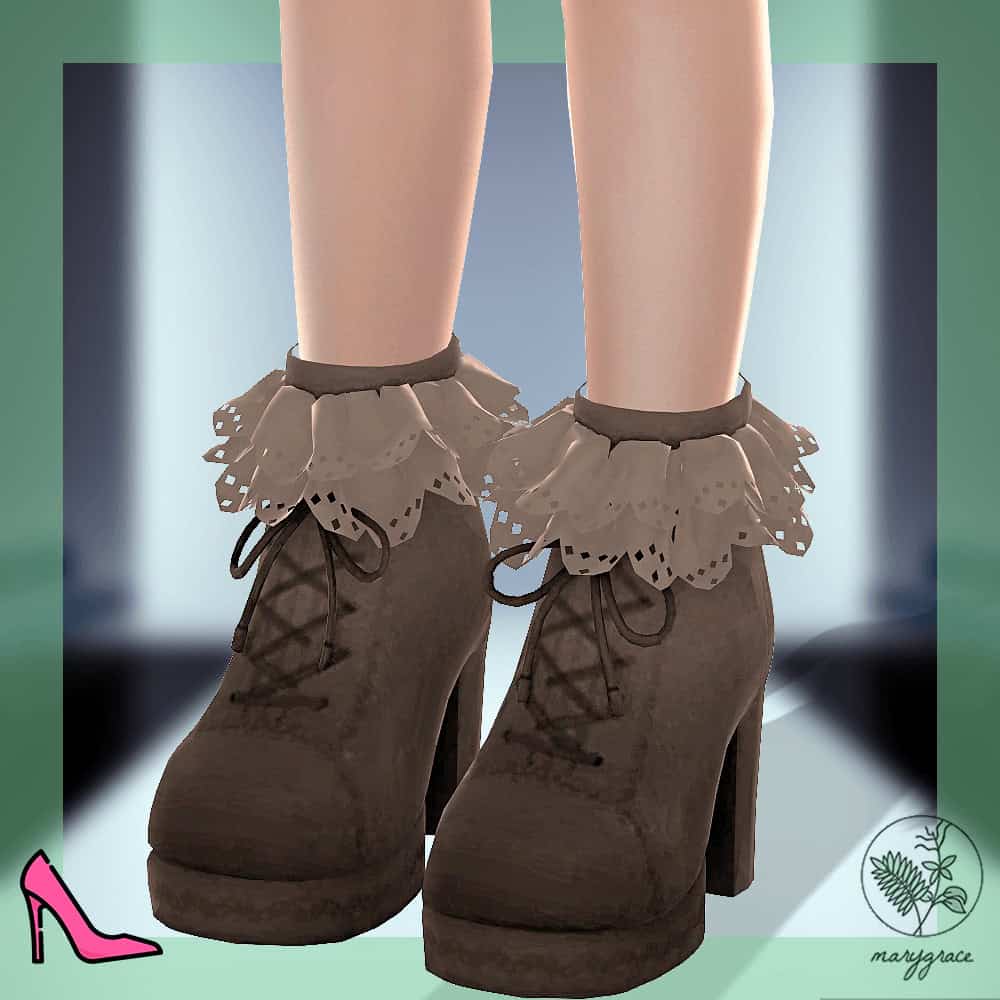 If you’re looking for a modern boot to dress your Sim for a night out or a concert, get the Alecta Boots cc. The pack contains a badass pair of high-heeled platform boots that make a statement with every step. These boots feature a thick heel and embroidered lacing that exude style and elegance. It’s available in 8 shades, including pink and army green, giving you a versatile range pf styling options.