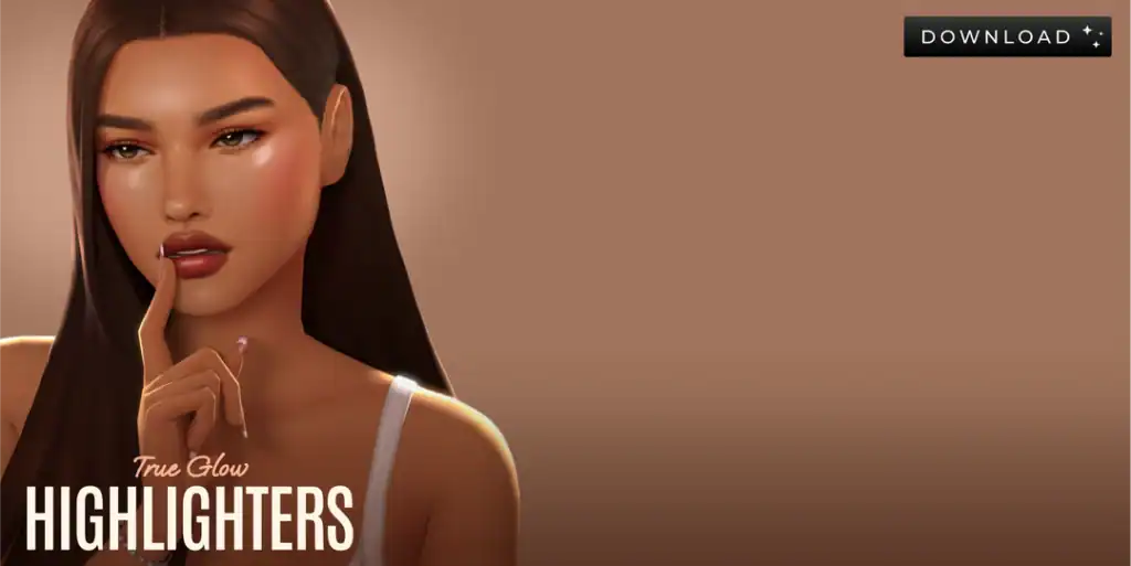 The highlight portion of this CC adds a luminous glow to the high points of the face, such as the cheekbones, the bridge of the nose, and the cupid’s bow. This ensures that your Sim’s features are accentuated with a soft, radiant shine. The set comes in six swatches and is compatible with the base game.