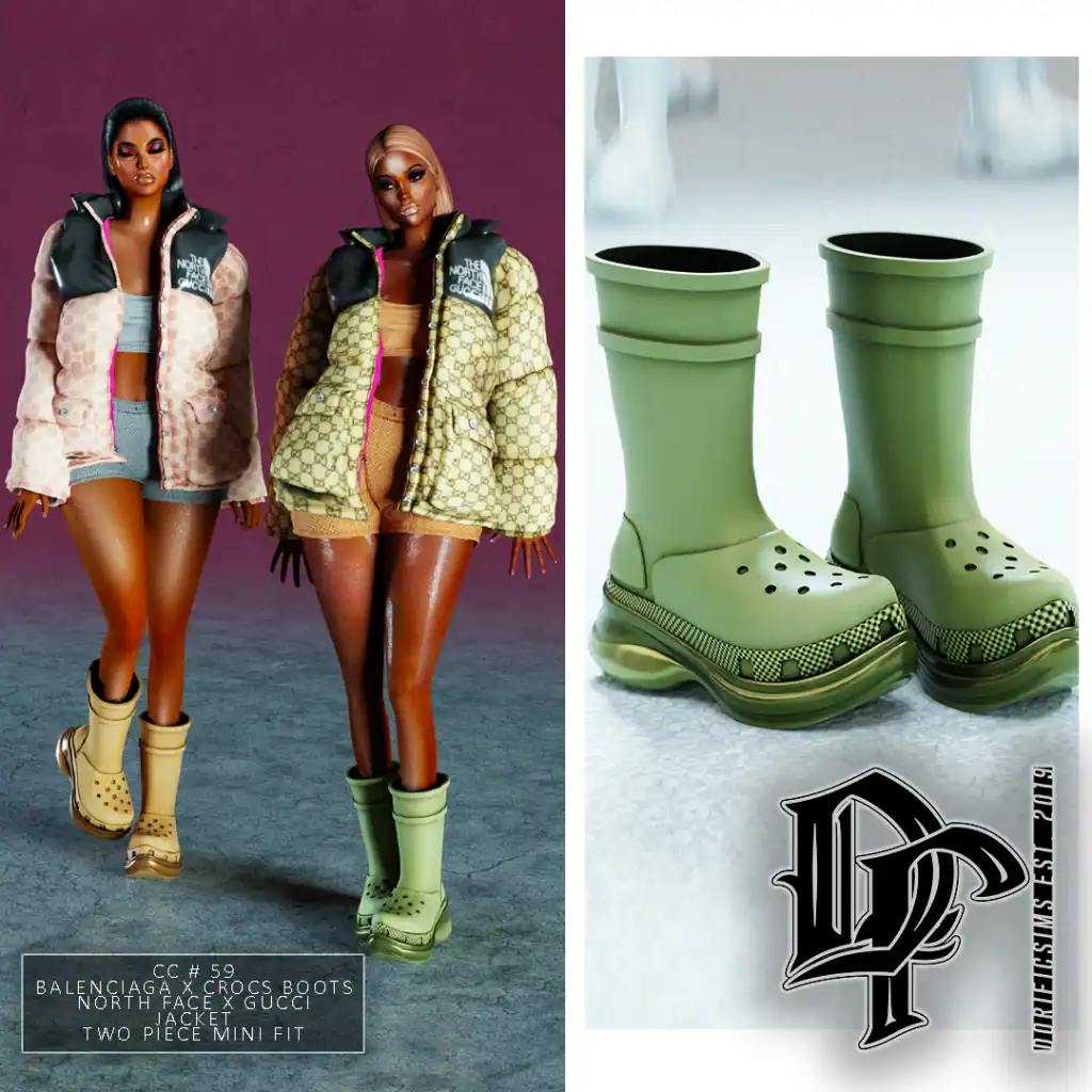 Balenciaga X Crocs Boots are among my favorite Sims 4 Crocs CC. The high-fashion, chunky, statement footwear is inspired by the iconic Balenciaga and Crocs collaboration. The boots feature a bold silhouette with a Crocs base.