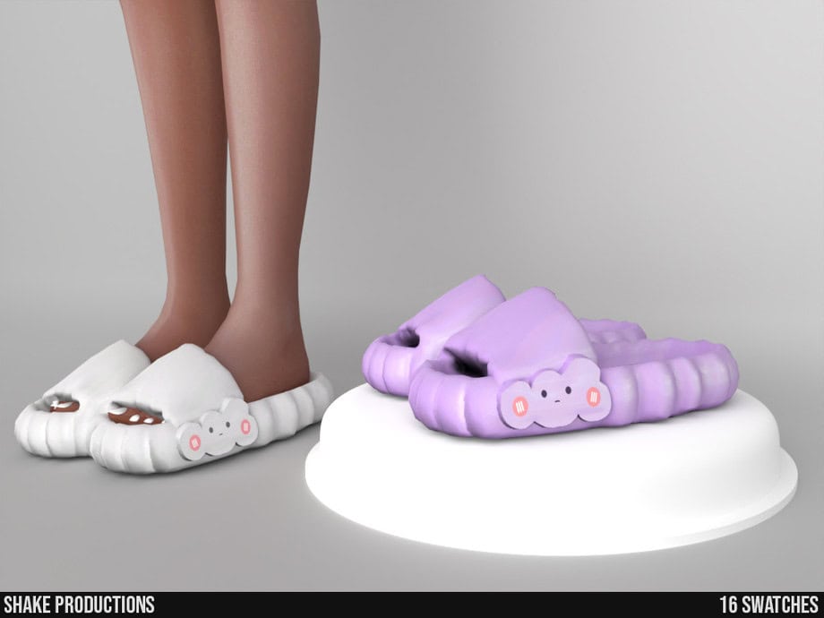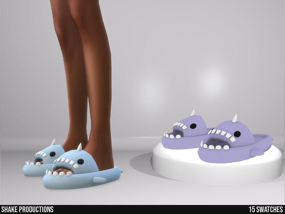 If you’re looking for statement slippers that lean fully into playful, cartoon-inspired design, the 936 Slippers CC has got your back. It comes with an exaggerated monster-style shape, complete with teeth, tiny horns, and oversized eyes that instantly stand out in CAS. This pair is available in 15 color swatches, comprising soft pastels like baby blue and lavender.