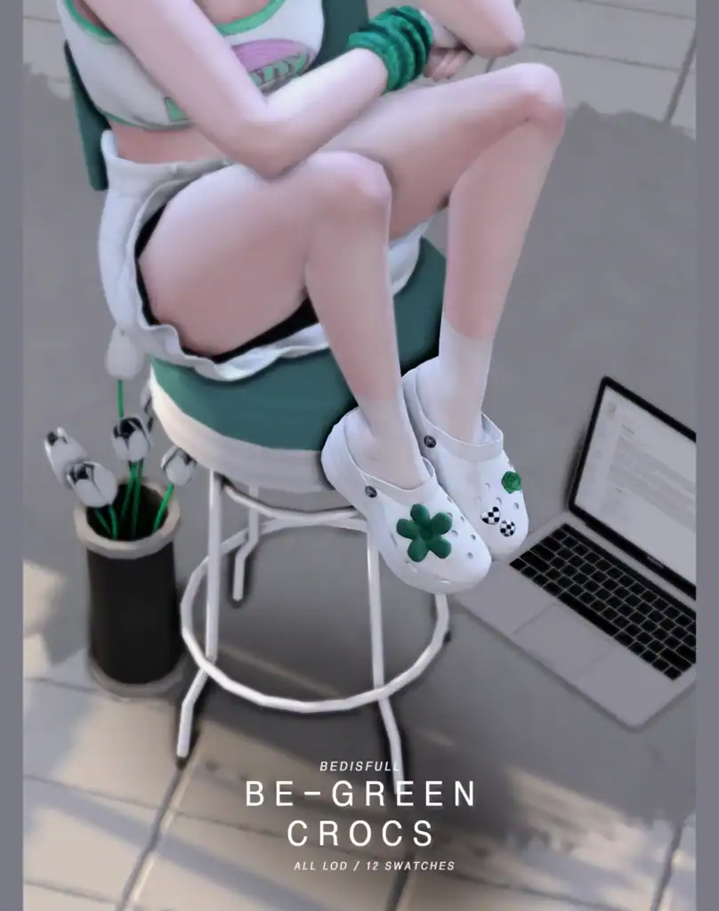 I’d use them with dark streetwear, grunge fits, or modern goth ensembles. Click on the attached link for more information on this Sims 4 crocs cc.