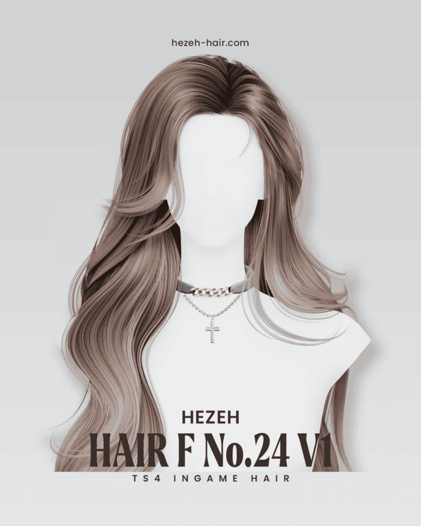 The hair comes in 24 swatches, and it’s fully hat-compatible. It’s designed for female Sims and has a polycount of 28k. The hair works well for everyday outfits, romantic looks, or formal styling, and pairs nicely with dresses, corset tops, blouses, or soft, feminine ensembles.