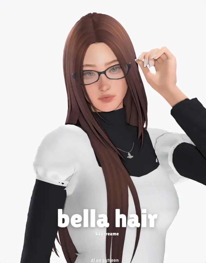 Bella Hair is a long, straight hairstyle with a clean middle part and smooth, sleek strands that fall naturally over the shoulders. The minimal, polished shape works effortlessly in everyday gameplay.