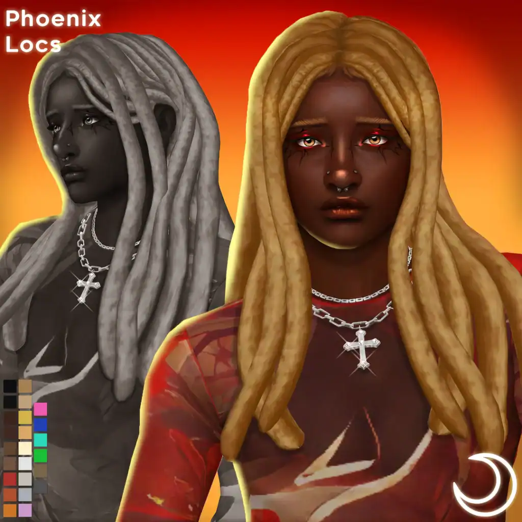 Phoenix Locs is a long locs hairstyle with thick, softly sculpted strands that frame the face and fall naturally over the shoulders. With this uniquely textured style, you can add variety and versatility to your CAS looks.