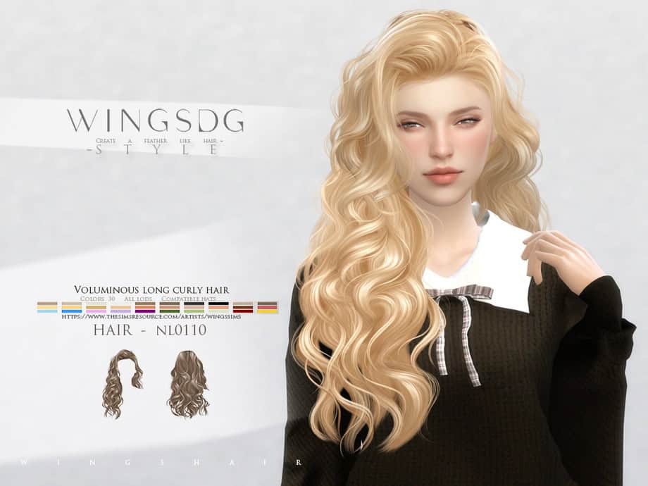 WINGS-NL0110 is a voluminous, long curly hairstyle with soft, defined curls and a natural flow that adds fullness and movement to your Sim’s look. The curls frame the face beautifully, creating a romantic and slightly dramatic silhouette.