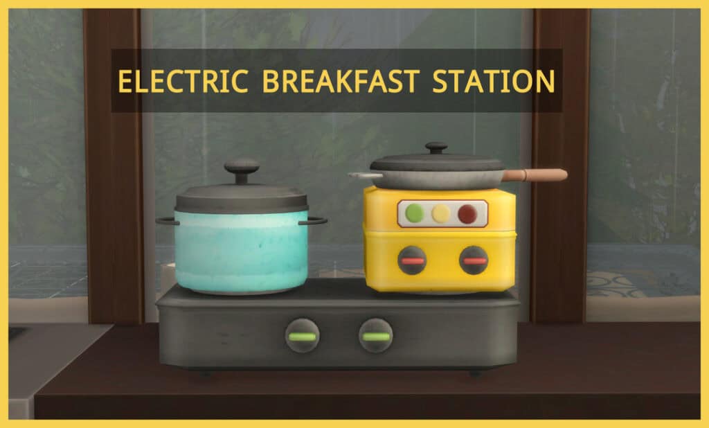 The Electric Breakfast Station is a functional morning kitchen appliance that your Sims can use to prepare complete breakfast plates. These include Butter Croissant, Lumberjack Breakfast, Pocahed Eggs, and many more.