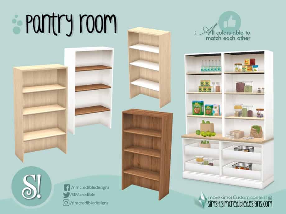 Storage CC adds shelves, cabinets, drawers, and organizers to help with visual organization in Build/Buy mode.