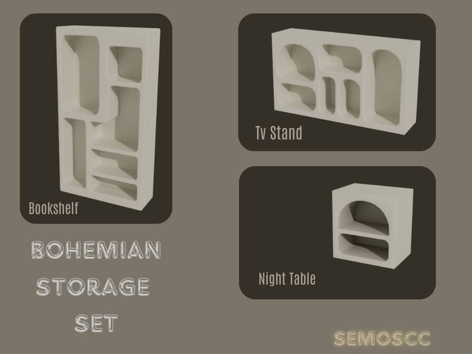 Due to their geometric shape, these Sims4 storage cc pieces work exceptionally well as center pieces in living rooms. Use them to complete boho, modern, or artistic interiors where storage doubles as a design feature.